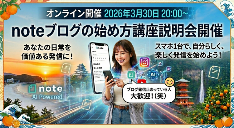 - 【無料開催】3月30日20時〜 noteブログの始め方講座説明会 - 2026年3月26日
