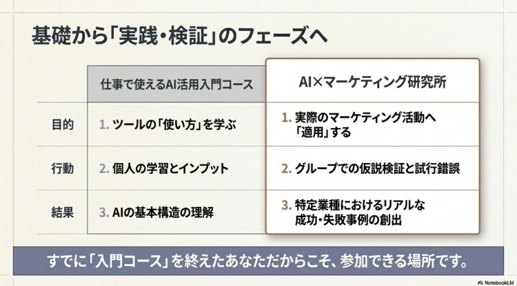 ◾️ 対象:「仕事で使えるAI活用入門コース」修了者、または同等の経験者